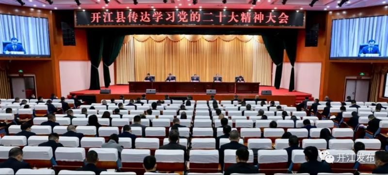 庞佑成要求,要全面推动党的二十大系列重大决策部署在开江落地生根、见到成效。各级各部门要牢牢把握党中央、省委、市委和县委的部署要求,切实把党的二十大精神落实到县域改革发展全过程、各方面,切实以新业绩来展现学习贯彻的新效果。要矢志不渝用“习近平新时代中国特色社会主义思想”领航指路,始终保持正确的前进方向。要紧扣“高质量发展是首要任务”的决策部署,全面推动经济社会高质发展。要紧扣“实施科教兴国战略”的决策部署,全面建设教育强县、人才强县。要紧扣“保障人民当家做主”部署要求,全力保障人民当家作主。要紧扣“坚持全面依法治国”部署要求,全面建设更高水平的法治开江。要紧扣“铸就社会主义文化新辉煌”的部署要求,全面提升开江文化软实力和影响力。要紧扣“增进民生福祉,提高人民生活品质”的部署要求,全面推进共同富裕。要紧扣“推动绿色发展,促进人与自然和谐共生”的部署要求,全面建设绿色开江。要紧扣“推进国家安全体系和能力现代化”部署要求,确保社会大局和谐稳定。要坚决落实“深入推进新时代党的建设新的伟大工程”部署要求,全面巩固发展良好政治生态。