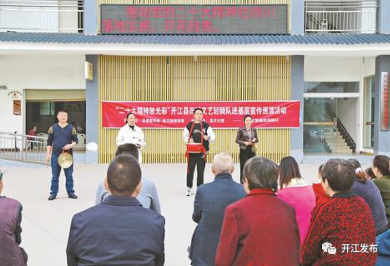 引导全县文艺工作者围绕学习宣传贯彻党的二十大精神,创作一批书法、美术、摄影、歌曲、舞蹈、曲艺等优秀文艺作品,开展全国新农村文化艺术展演。策划推出《田城开江在行动》等电视专栏,制作播出党的二十大精神宣传新闻稿件40余件。依托“开江观察”APP,开设《二十大时光》等专栏和视听节目,及时转载中央主流媒体的新媒体产品30余条,平均浏览量1万余人次。
